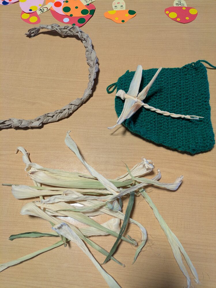 昔は、とうもろこしの皮を使って草履を作ったと利用者の方から