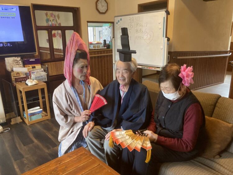 ささやかに桃の節句のひな祭りを行いました。 男性はお内裏様、